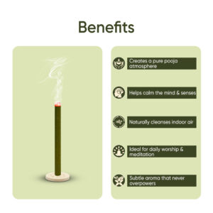 - Complete Shastra-Sammat Set: Each box contains 40 long dhoop sticks and a traditional chariot wheel dhoop stand, crafted for sattvic, chemical-free worship.
