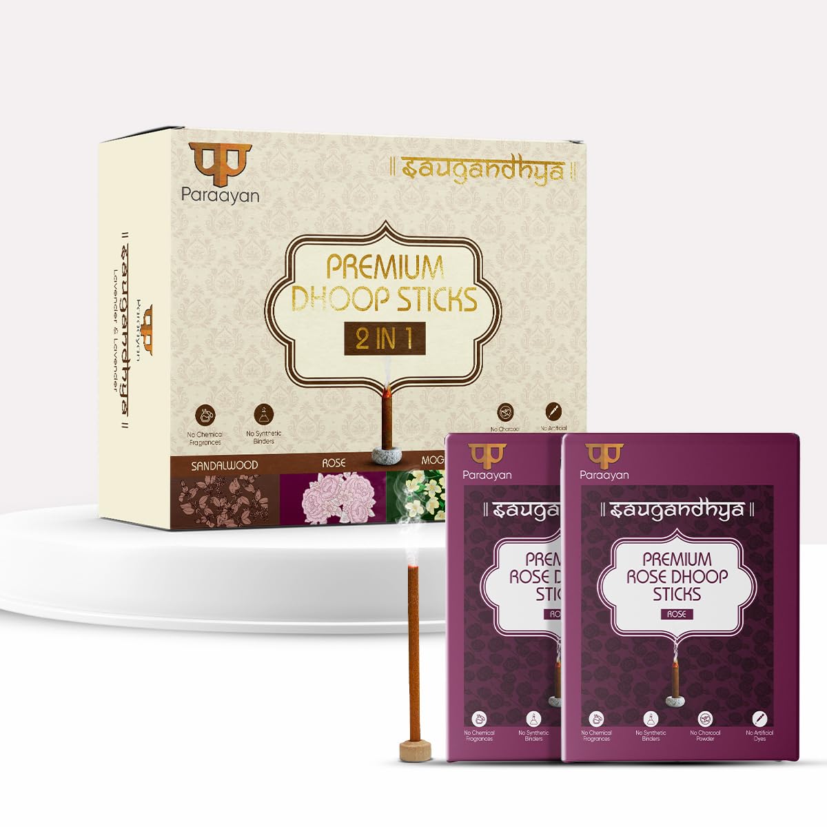 Paraayan Saugandhya Dhoop Sticks (Rose Combo) | 1 Pack, 2 Boxes, 20 Sticks Each