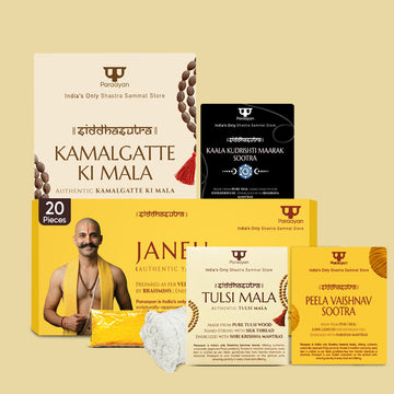 Drawn from Sanatan practice, Siddhasootra signifies the ritual thread binding discipline, intention, and action, ensuring stability, continuity, and correct flow during worship.