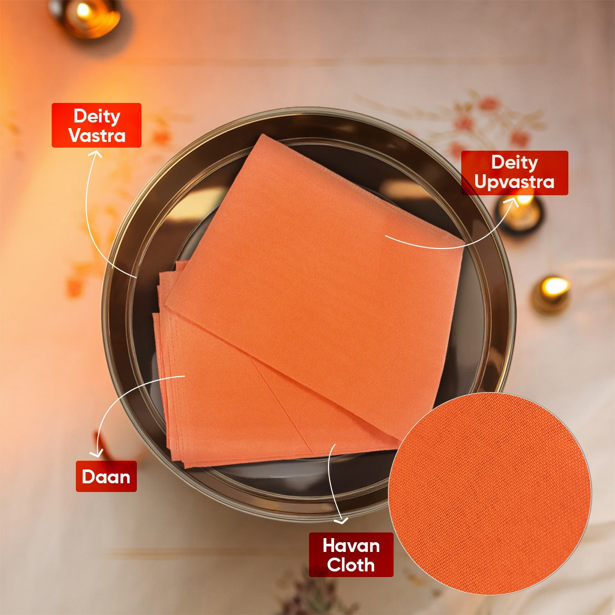 Paraayan Bhagwa Vastra For Puja | 1.25 Meter Long | Sacred Orange Cloth For Mandir, Home Temple | Pack of 1 (Orange Pooja Cloth)