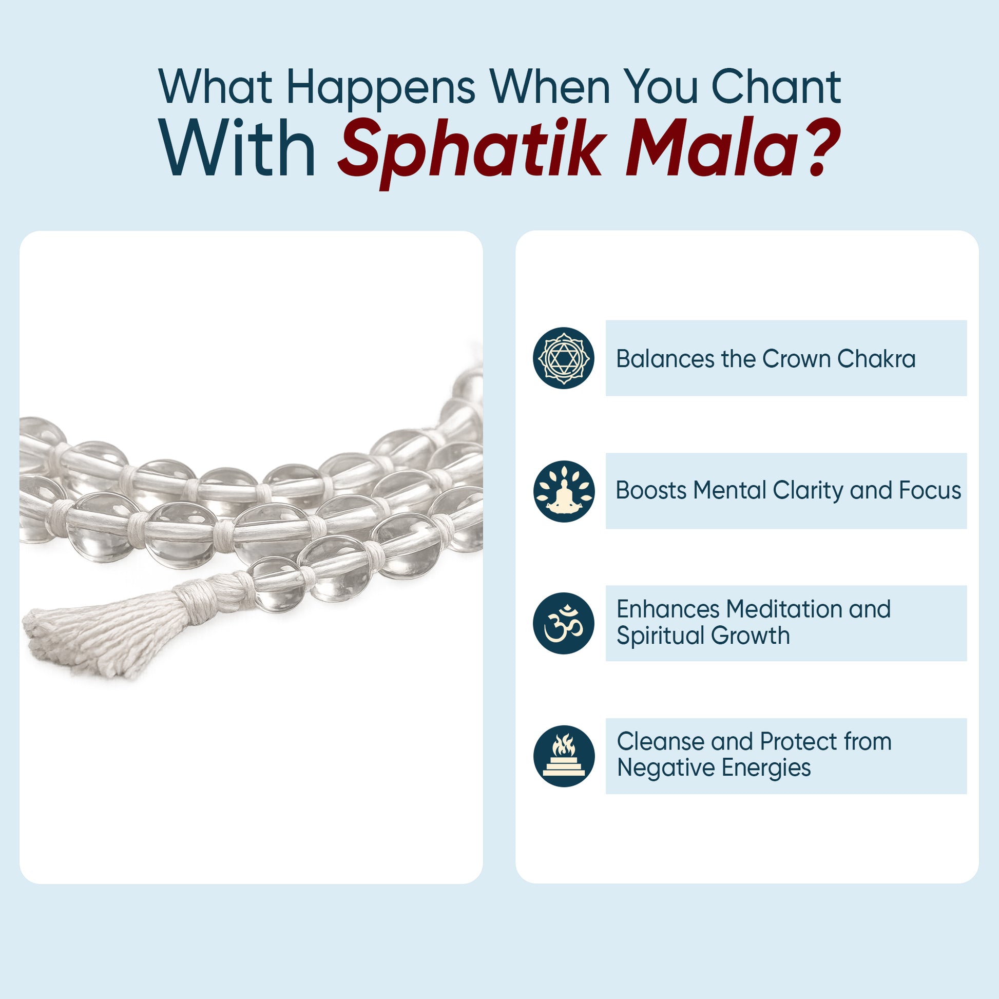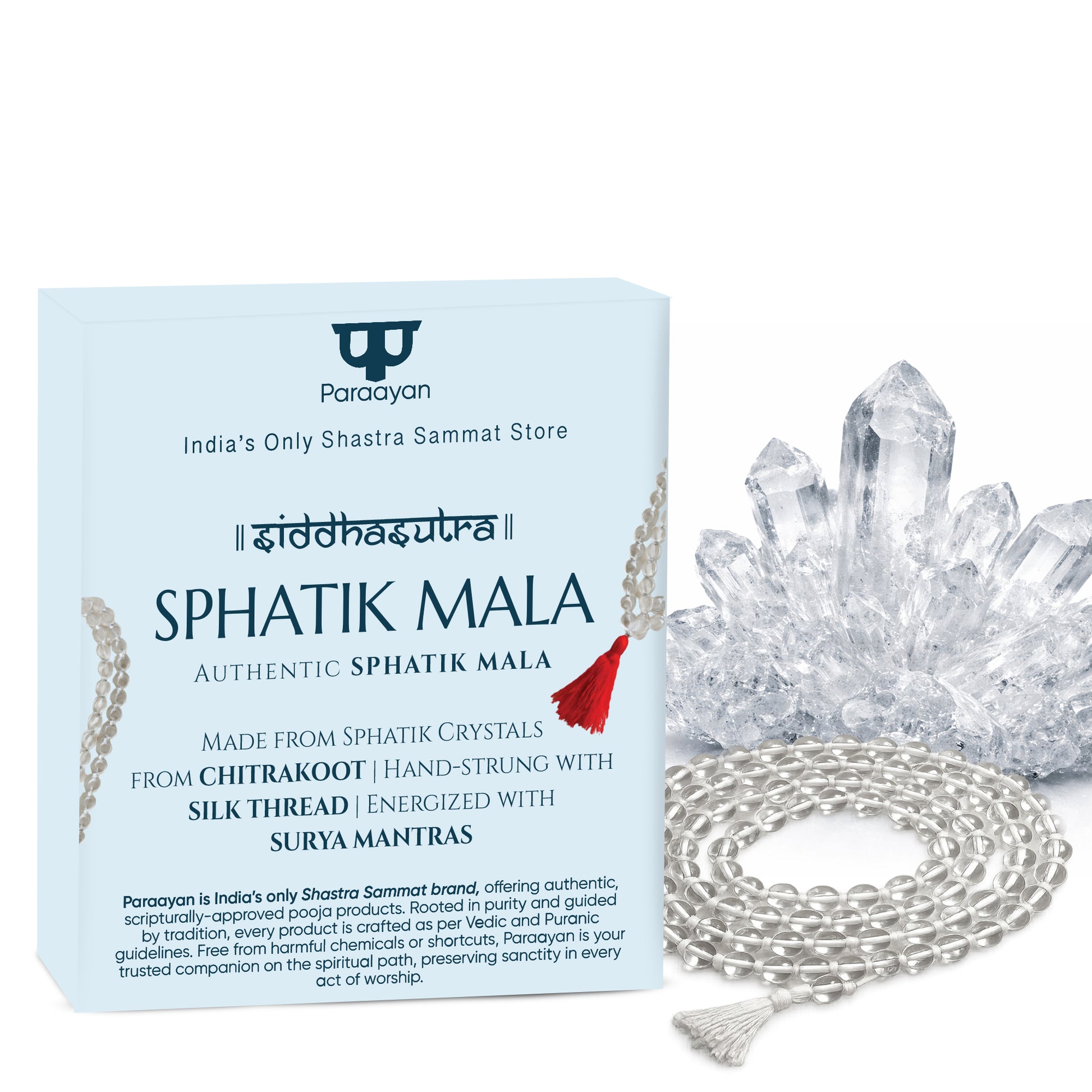 Paraayan for inner peace, prosperity, and divine blessings begins with the sacred Sphatik Mala. Made from high-quality crystal beads, this Mala is revered for its ability to purify the mind, body, and soul. Known for its calming and healing properties, Sphatik or Quartz is considered a powerful tool in spiritual practices, offering clarity, balance, and protection. Perfect for chanting mantras, meditation, and pooja, the Sphatik Mala enhances spiritual energy, connecting the devotee to divine consciousness