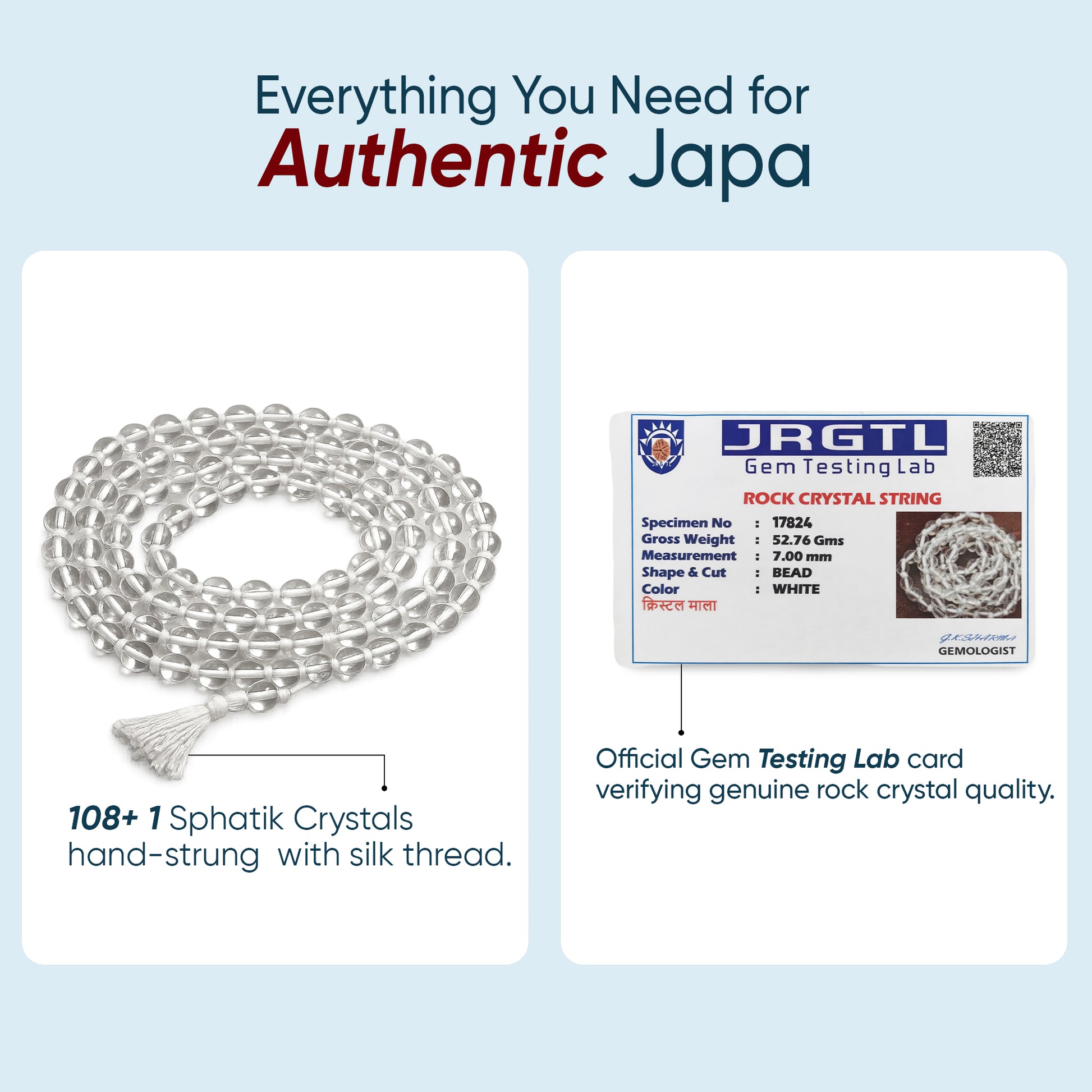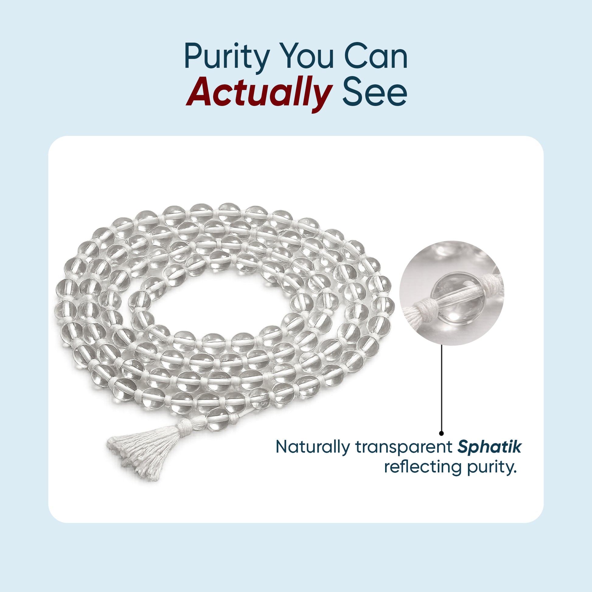 Paraayan Natural Pure Sphatik Mala with 108 Pure Crystal Beads | 6 mm Beads Size for Meditation, Puja Jaap Mala |Pack of 1