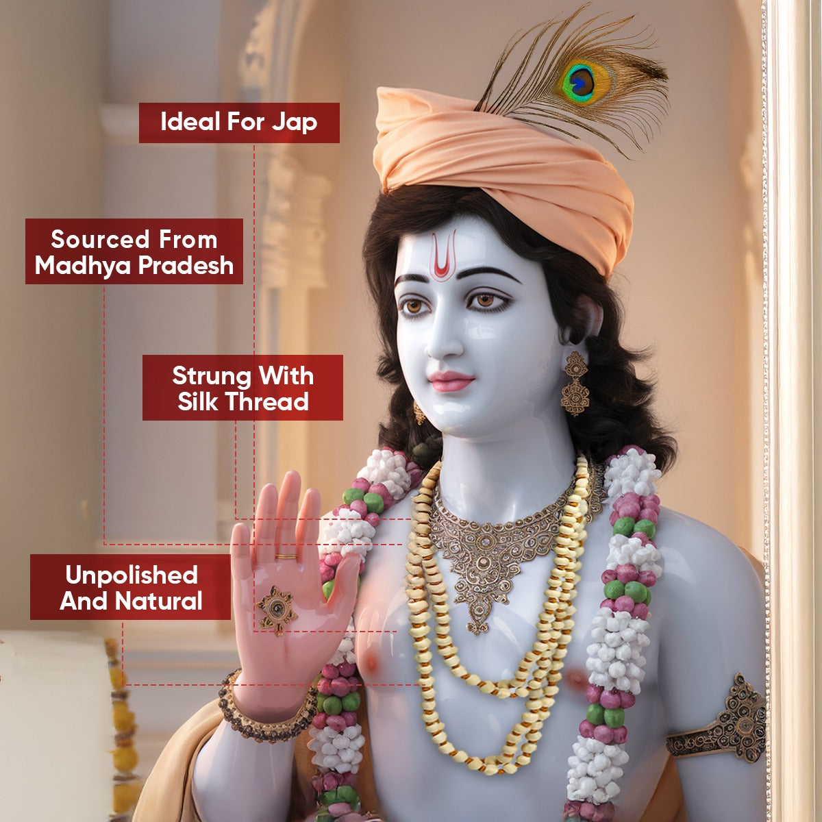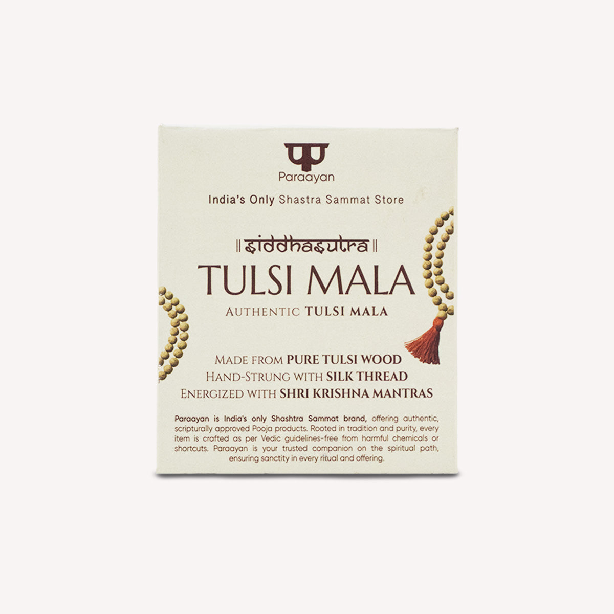 Paraayan for spiritual strength and peace begins with the Tulsi Mala, a revered and sacred item in Hindu rituals. Made from the holy Tulsi (Basil) plant, this Mala is known for its immense spiritual significance. Tulsi is considered the embodiment of purity and devotion, and its beads are believed to bring divine blessings, peace, and protection. Perfect for chanting mantras, meditation, and pooja ceremonies, the Tulsi Mala helps in connecting with higher consciousness, promoting mental clarity, and fostering inner peace.