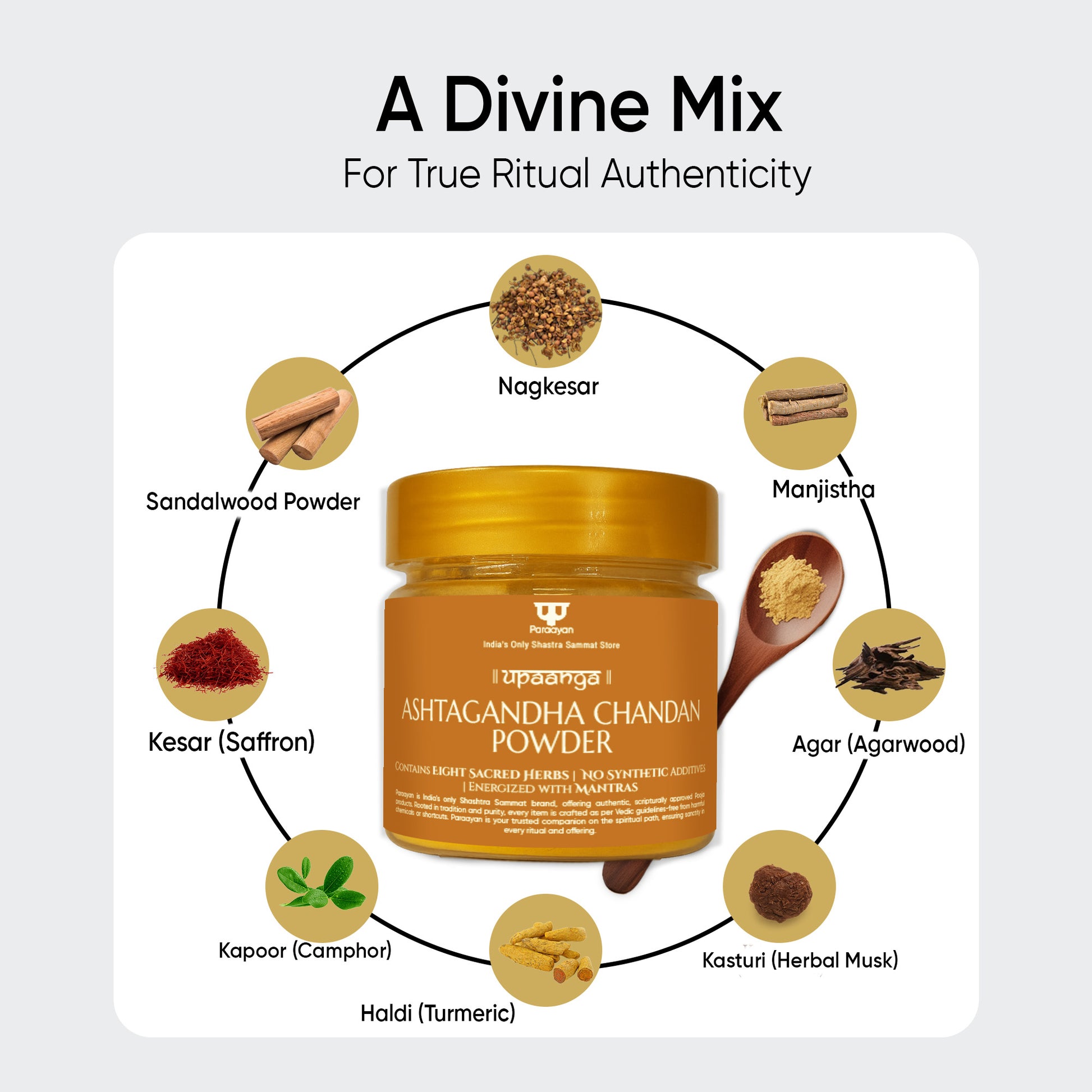 Paraayan Pure Ashtagandha Chandan Powder 50g | Shuddh Natural Chandan for Pooja, Tilak, Abhishek & Meditation